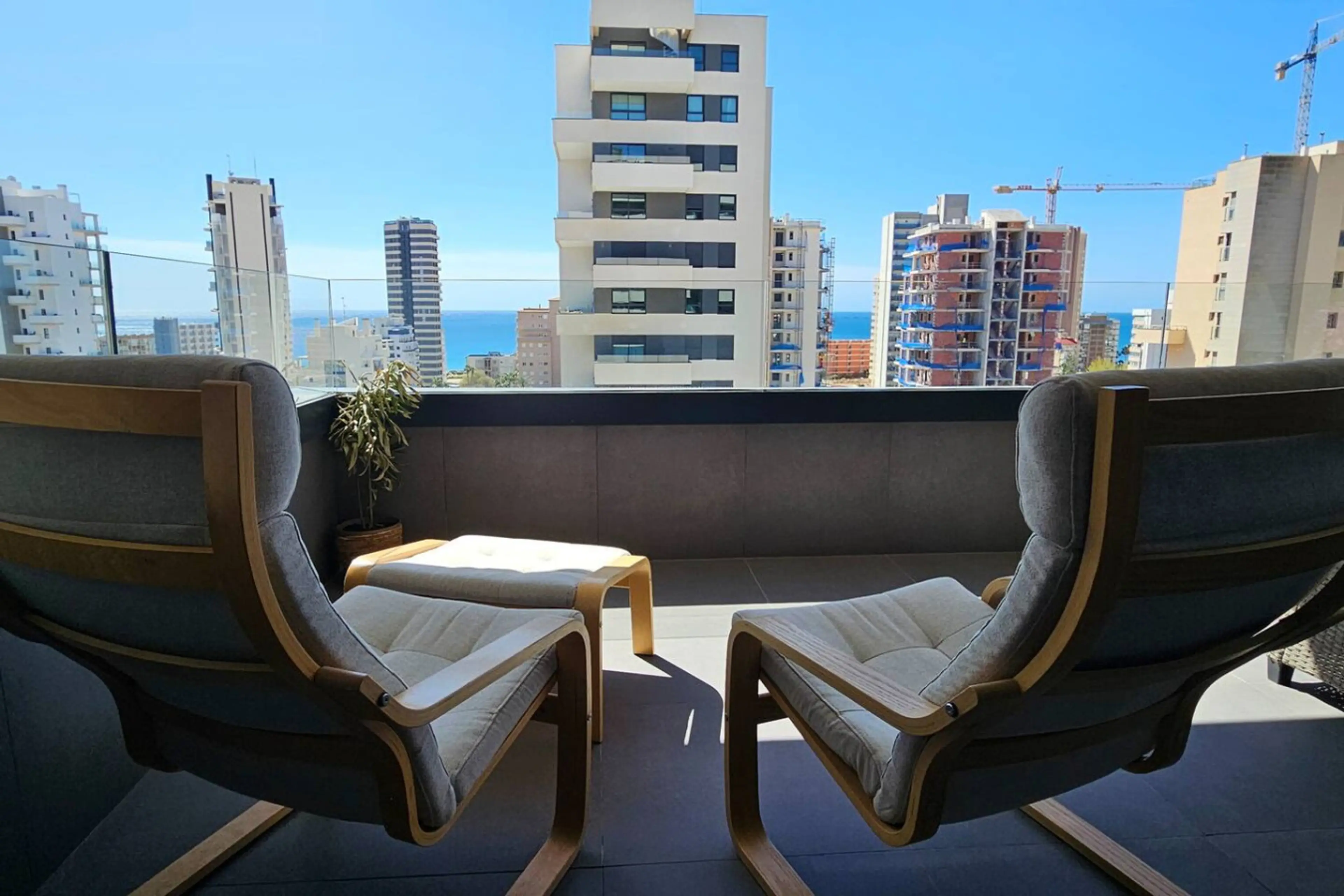 Stylish modern apartment with a large private terrace and beautiful views over Calpe. Enjoy sunny breakfasts, cava sunsets, and relaxed Mediterranean living. The complex offers a large swimming pool, gym, and padel court. Perfect for families, couples, or friends looking for comfort, design, and a g...